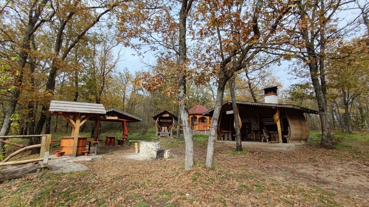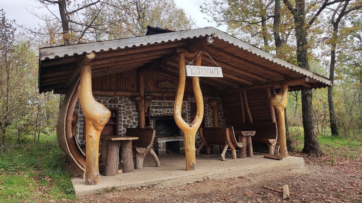 Място за почивка до самия път от Тополовград за връх Вишеград, изградено с мерак и естетически усет към детайла. Имаш усещането, че си попаднал в някоя от приказките за баба Яга.